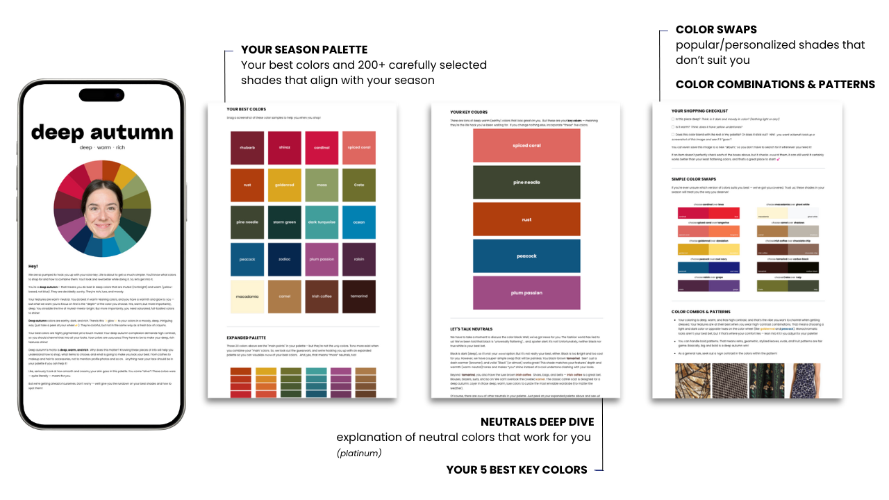 After 4+ years and over 4,000 clients, we’ve fine-tuned exactly what people actually need to truly understand their season — and that’s what we bring you with your color key.